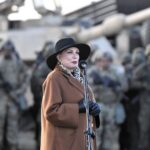 ⬆ Ambasador USA w Polsce Georgette Mosbacher podczas spotkania z żołnierzami, uczestniczącymi w ćwiczeniu DEFENDER-Europe 20, na poligonie w Drawsku Pomorskim. Fot. PAP/Marcin Bielecki