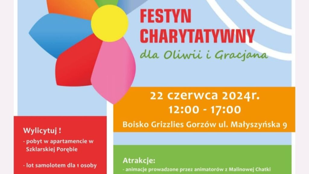 Festyn zaplanowany jest na sobotę na boisku Grizzlies Gorzów przy ul. Małyszyńskiej. W programie wiele atrakcji dla młodszych i starszych: dmuchańce, malowanie twarzy, przejażdżki na motocyklach czy loteria fantowa.