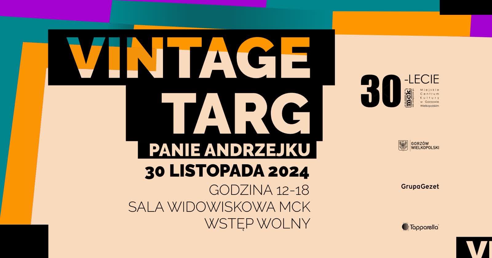 Czwarty Vintage Targ odbędzie się w sobotę 30 listopada 2024 r. w godzinach 12.00 – 18.00 w sali widowiskowej MCK przy ulicy Drzymały.