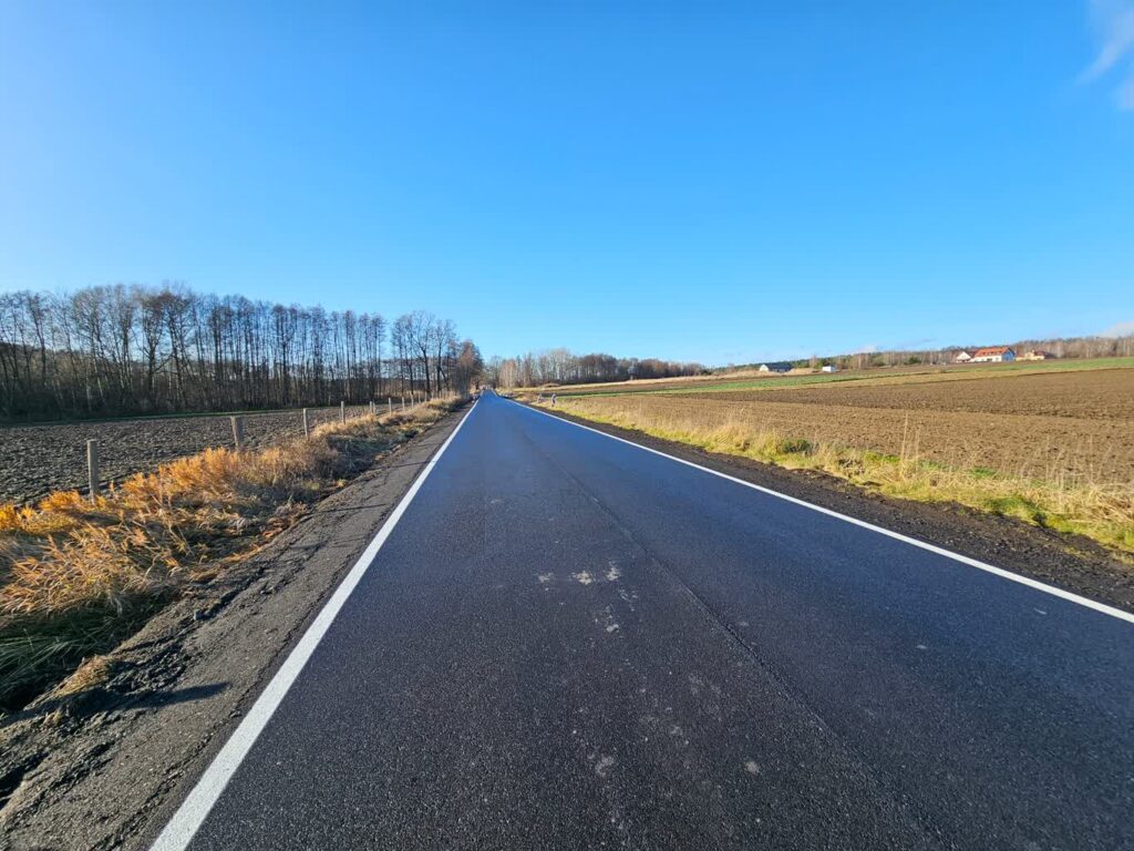 W ramach prac przeprowadzono wymianę przepustów, odnowiono rowy drogowe, wzmocniono podbudowę oraz położono nową nawierzchnię z masy bitumicznej.