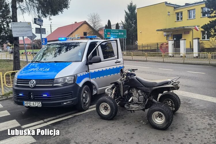 Policjanci ze Słubic zatrzymali 21-latka kierującego quadem, który nie zatrzymał się do kontroli. Jak się okazało, mężczyzna w ogóle nie posiadał prawa jazdy, a quad, którym się poruszał nie miał tablicy rejestracyjnej, widocznego numeru VIN, ani numeru silnika oraz pojemności.