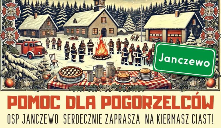 OSP Janczewo zaprasza w najbliższą sobotę (11 stycznia) na charytatywny kiermasz ciast. Celem jest pomoc pogorzelcom. – Cały dochód z kiermaszu zostanie przekazany dla pani Marioli i pana Zbyszka na odbudowę domu po pożarze – czytamy na plakacie zachęcającym do udziału w akcji.