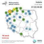 Obowiązują też ostrzeżenia I i II stopnia przed silnym wiatrem. IMGW ostrzeżenie II stopnia wydał dla powiatów sławieńskiego (woj. zachodniopomorskie), słupskiego, Słupsk, lęborskiego, wejherowskiego i puckiego (woj. pomorskie). Wystąpi tam silny wiatr o średniej prędkości 40 km/h-60 km/h, w porywach do 90 km/h, a nad morzem do 100 km/h. Najsilniejsze porywy wiatru nad ranem oraz w ciągu dnia. Ostrzeżenie obowiązuje do godz. 22 w sobotę.
