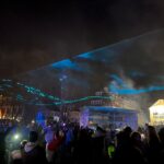 W tym roku, zamiast tradycyjnych fajerwerków, zielonogórzanie mogli uczestniczyć w pokazie laserów, który odbył się na placu przed filharmonią.