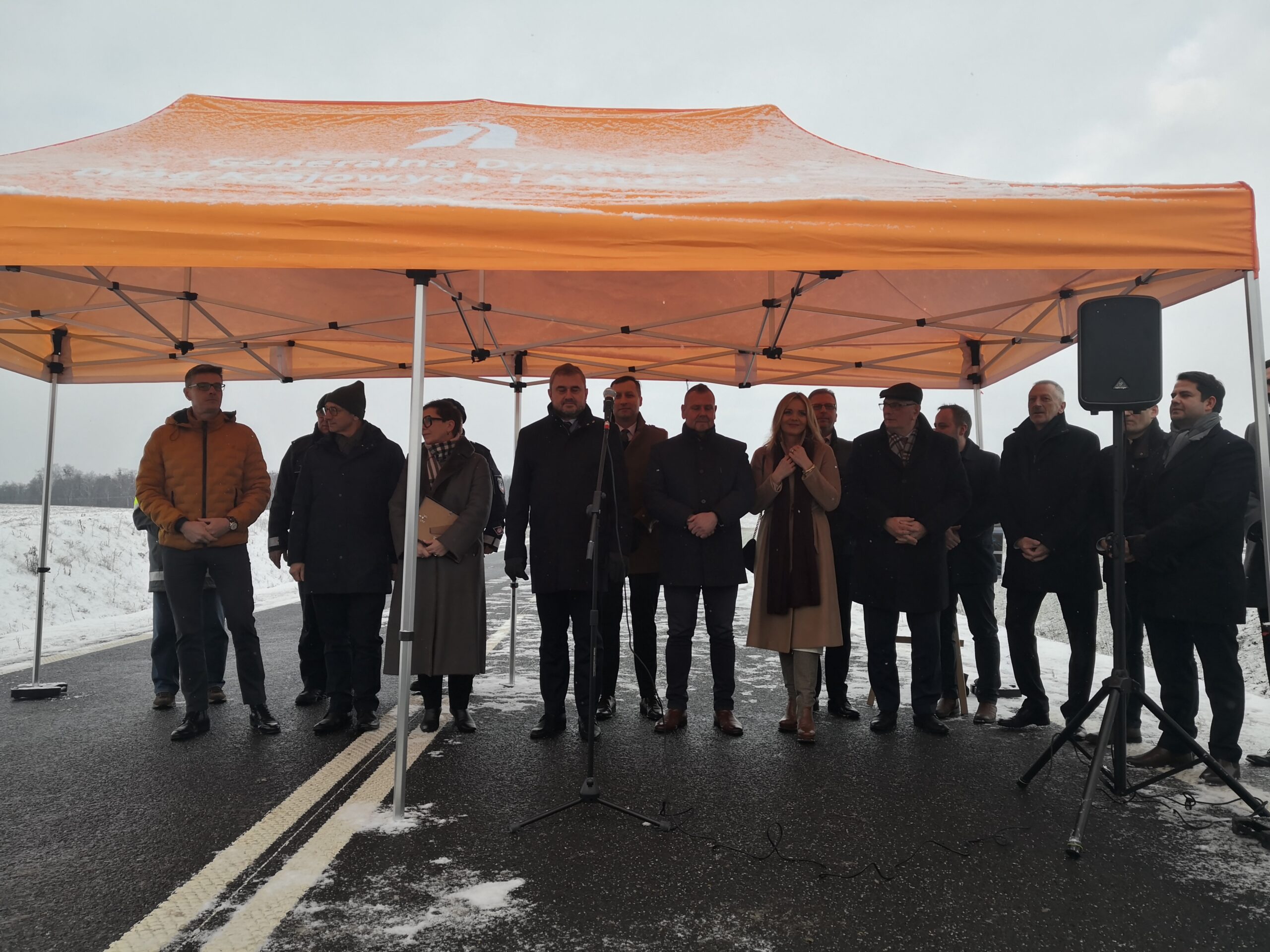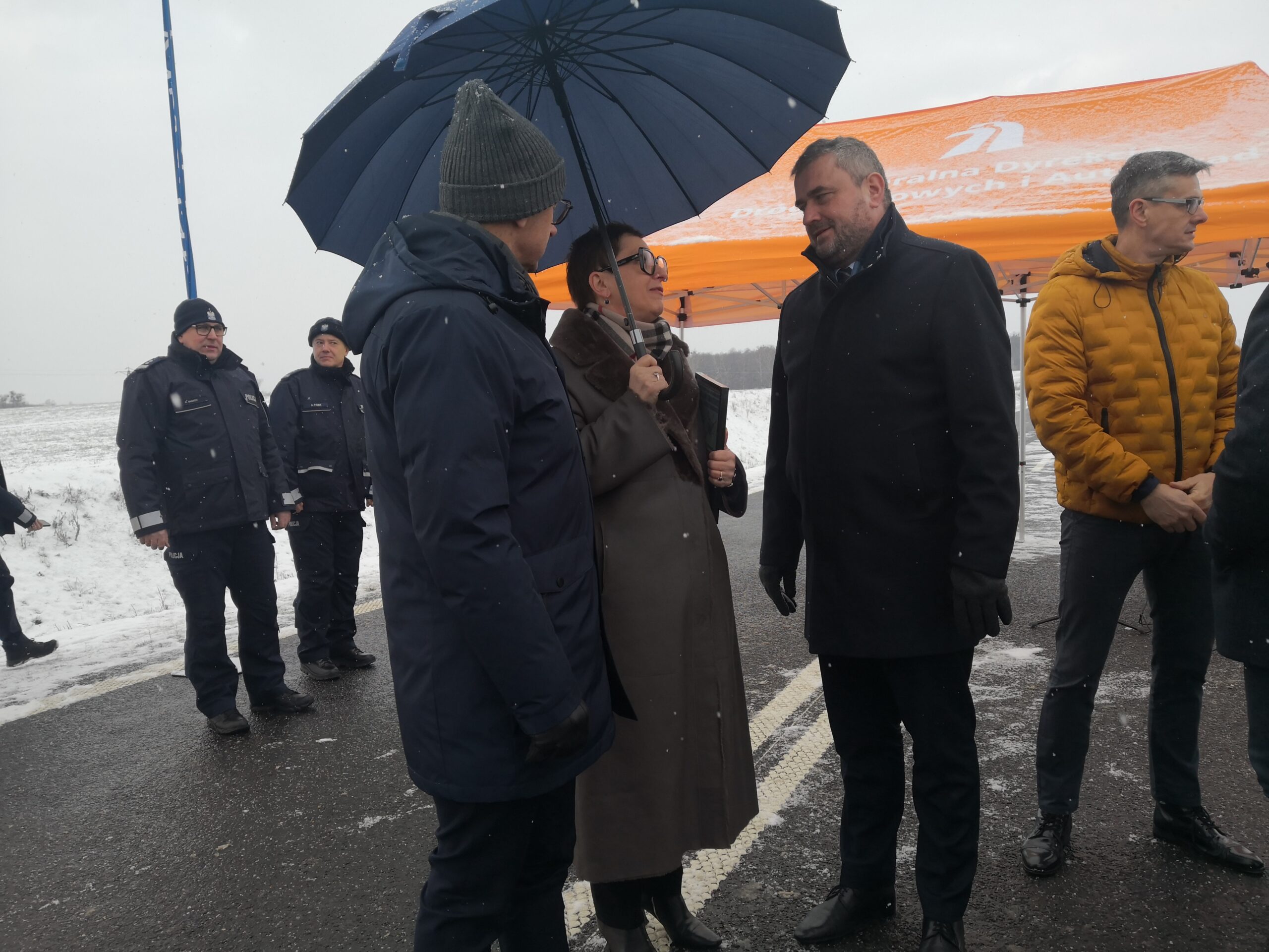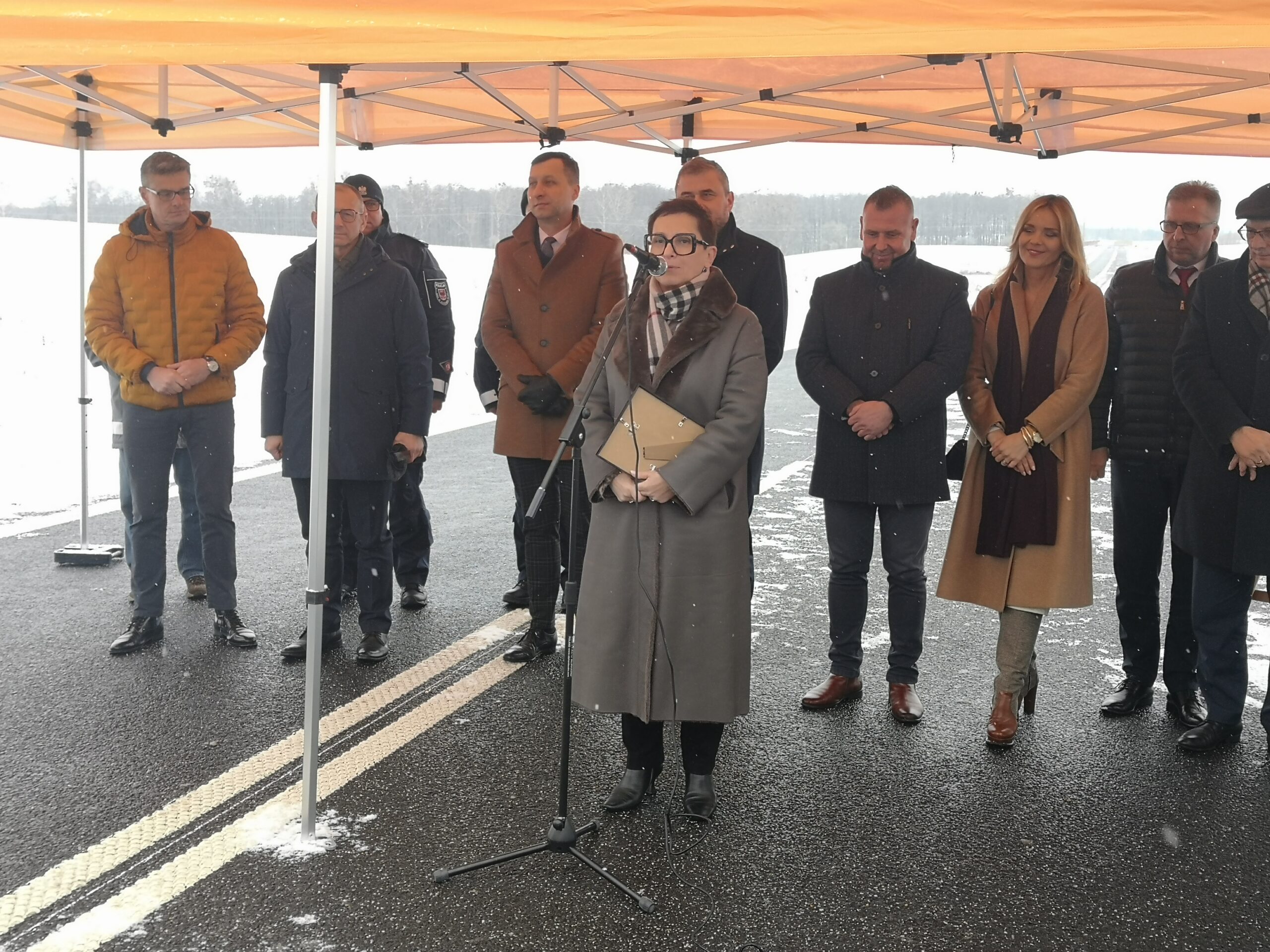 Uroczystość odbyła się na jeszcze zamkniętym odcinku drogi, ale w południe ma zostać otwarta droga dla ruchu.