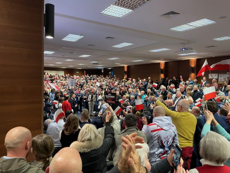 Karol Nawrocki, kandydat w wyborach prezydenckich popierany przez Prawo i Sprawiedliwość, spotkał się ze swoimi zwolennikami w auli Akademii im. Jakuba z Paradyża.