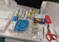 Tematyczne przypinki, karnety zdrowia i upominki za badania w kiosku.