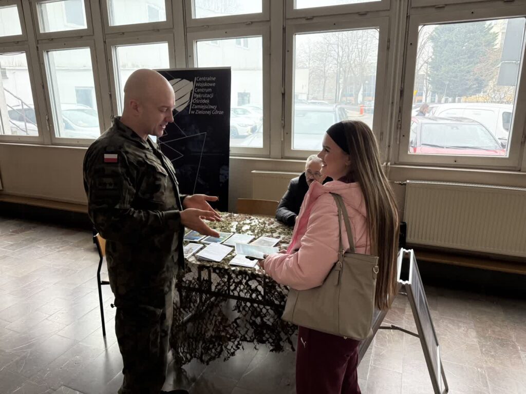 – Jesteśmy tu po to, aby porozmawiać ze studentami, przedstawić im naszą ofertę i zachęcić do udziału w kursie – mówi kapitan Mateusz Budynek z Wojskowego Centrum Rekrutacji w Zielonej Górze: