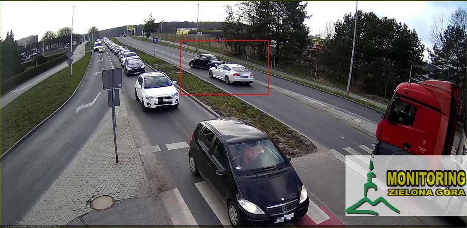 Takie niebezpieczne zachowanie zostało zarejestrowane przez kamery miejskiego monitoringu w Zielonej Górze.