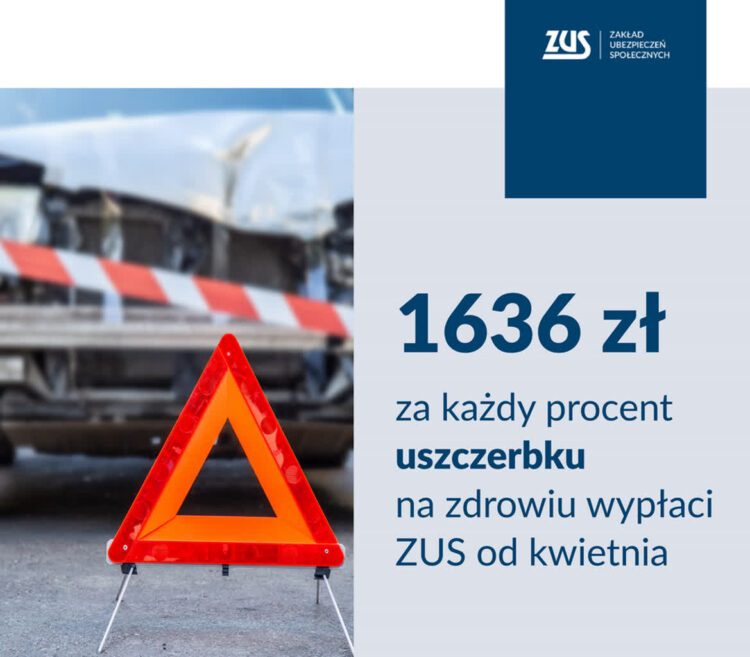 1636 zł – dokładnie tyle od 1 kwietnia wypłaci Zakład Ubezpieczeń Społecznych za każdy procent uszczerbku na zdrowiu w ramach odszkodowania po wypadku przy pracy lub w wyniku choroby zawodowej. To więcej o 205 zł niż do tej pory.