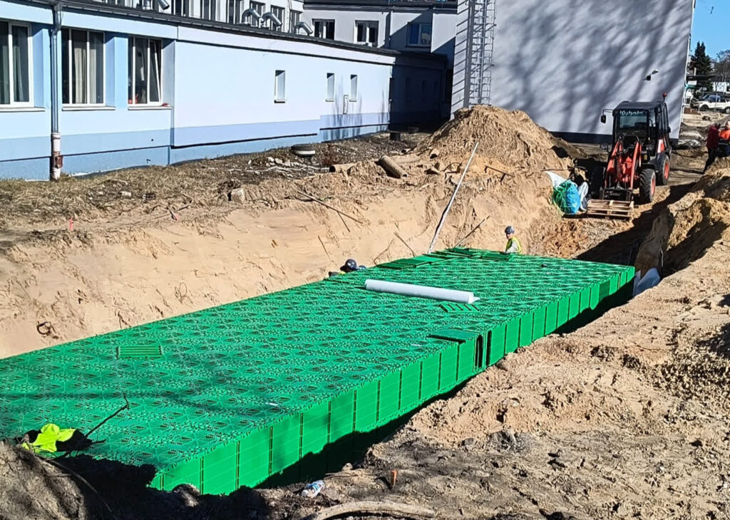 Trwa realizacja inwestycji związanej z zagospodarowaniem wód opadowych przy siedzibie Zielonogórskich Wodociągów i Kanalizacji na ul. Zjednoczenia w Zielonej Górze.