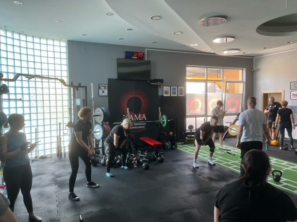 Na starcie zmagań stanęło kilkudziesięciu uczestników. Mają oni za zadanie wykonać jak największą liczbę swingów, czyli przysiadów z wymachem kilkukilogramowym odważnikiem: