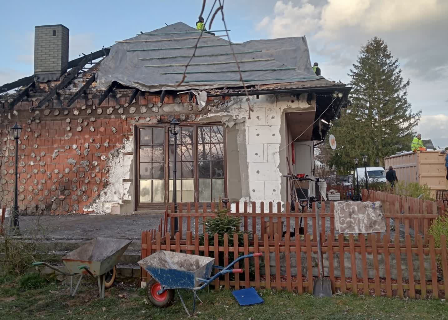 W pożarze spłonęła górna część domu razem z dachem. W budynku mieszkali nie tylko właściciele, ale także starsze, schorowane zwierzęta, którymi się opiekowali.