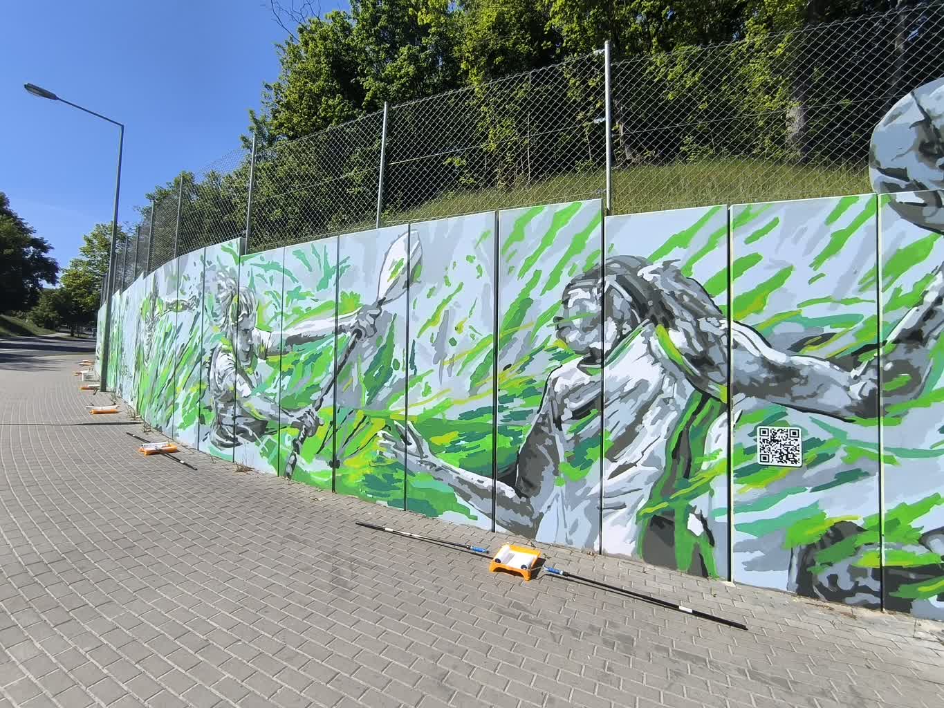 Mural wykonano na płytach muru oporowego, który powstał podczas przebudowy dróg w tej części miasta. Ma 86 metrów długości. Wykonawcy namalowali na nim kilkanaście sylwetek gorzowskich mistrzów w różnych dyscyplinach sportu.