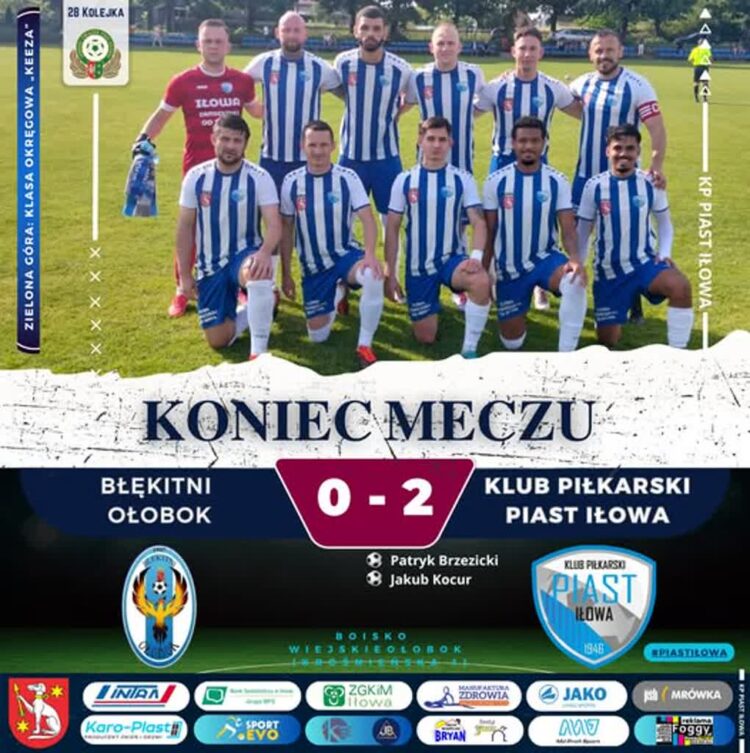 Piłkarze Piasta Iłowa wygrali wyjazdowe spotkanie z Błękitnymi Ołobok 2:0 i na dwie kolejki przed końcem rozgrywek zapewnili sobie awans do IV ligi.