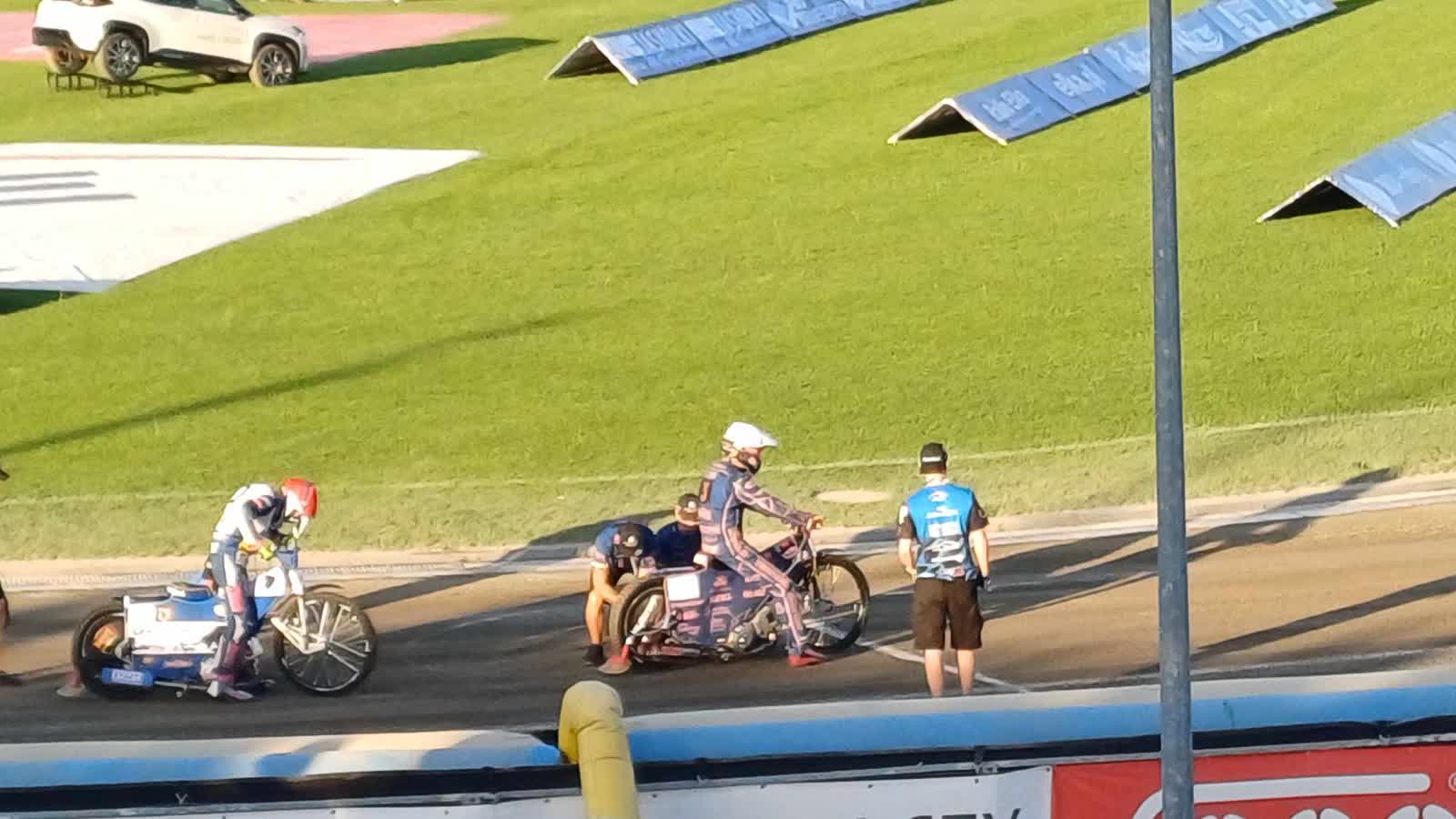 W parkingu gorzowskich żużlowców wspierał, poruszający się o kulach, Hubert Jabłoński.