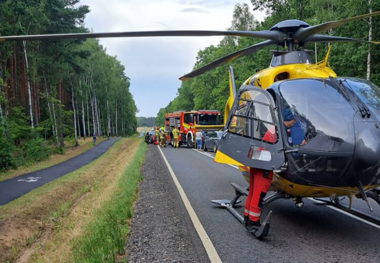 Na drodze Sława – Lipinki doszło dziś do wypadku. Jedna osoba została ranna, przyleciał po nią śmigłowiec pogotowia.