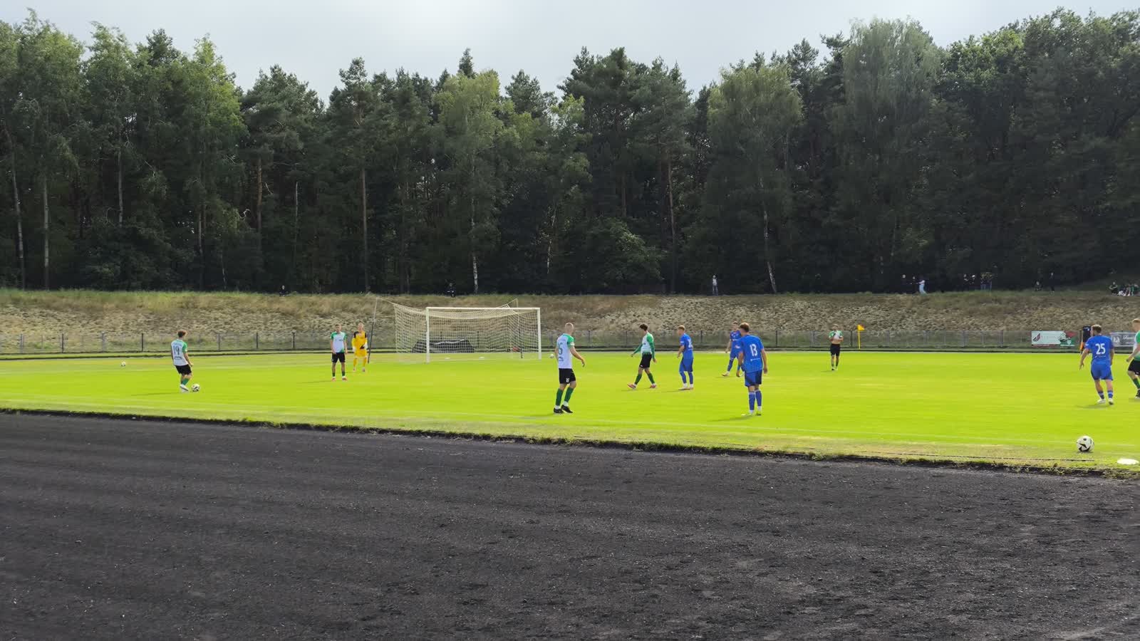 Spotkanie miało bliźniaczy przebieg do niedawnego pojedynku Cariny z Górnikiem II Zabrze. Podobnie jak wtedy, gubinianie prowadzili do przerwy 1:0. W 39 minucie Olaf Kania został idealnie uruchomiony górnym podaniem podczas wbiegania w pole karne, po czym powalił go na ziemię jeden z rywali. Arbiter wskazał na „wapno”, z którego pewnie strzelił Denis Matuszewski.