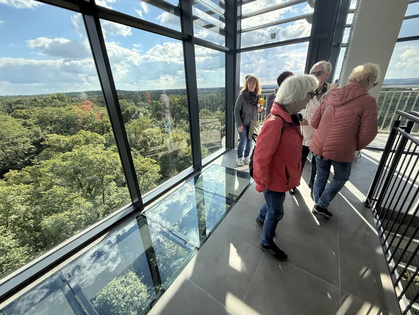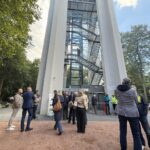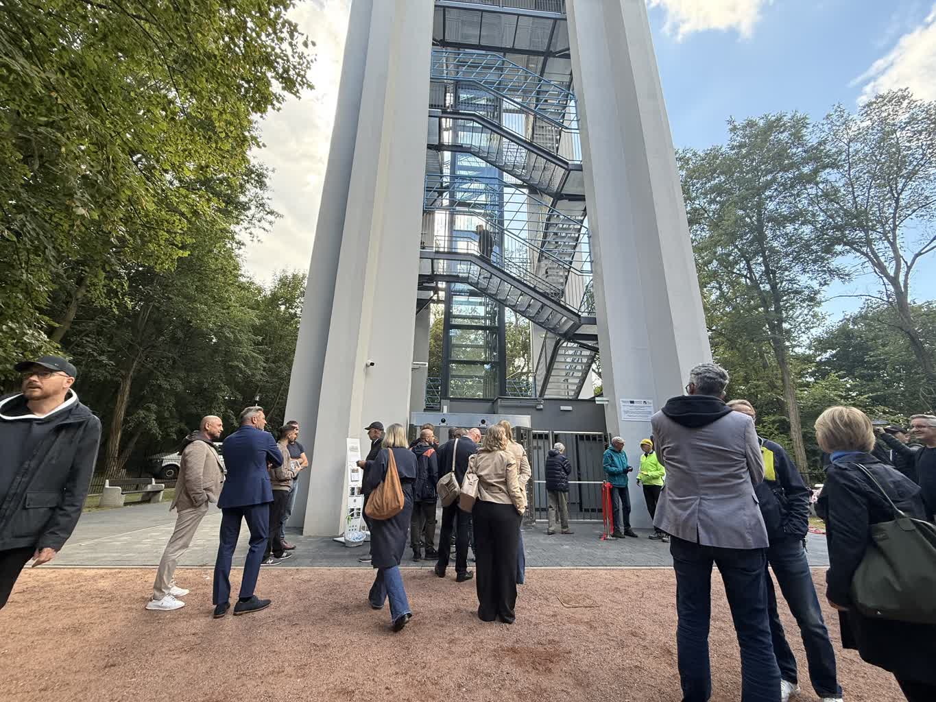 Tłum. Jestem zachwycona i zaskoczona. Mój mąż bywał tu często w czasie budowy wieży i dzisiaj przyszliśmy z Frankfurtu na pieszo. Myślę, że zimą będzie to równie piękny widok.