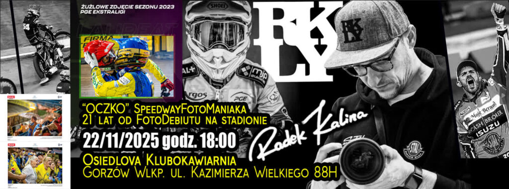 Swoją pracą uwiecznia sportowe momenty gorzowskich drużyn, najbardziej związany jest jednak z żużlem. Radek Kalina potrafi w niecodzienny sposób ując emocje, nie tylko te na torze ale i w parku maszyn czy na trybunach. W sobotę będzie opowiadał o swojej pasji.