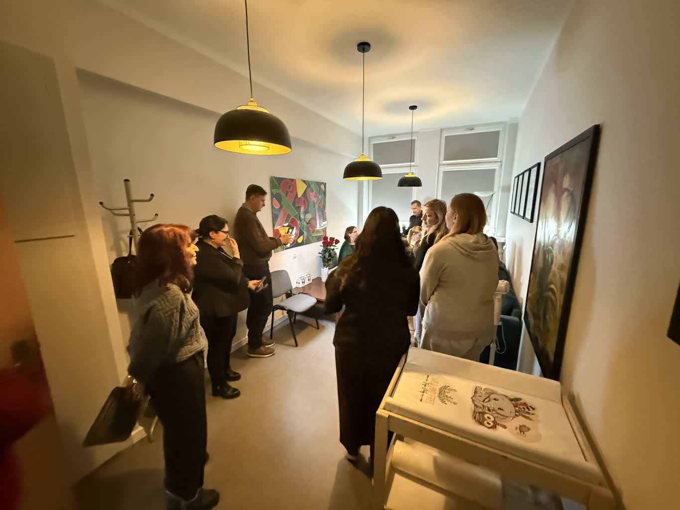 W Pokoju Wyciszeń znajduje się m. in. wygodna kanapa, stolik z krzesłami, przewijak dla studentek z dziećmi oraz słuchawki wygłuszające.