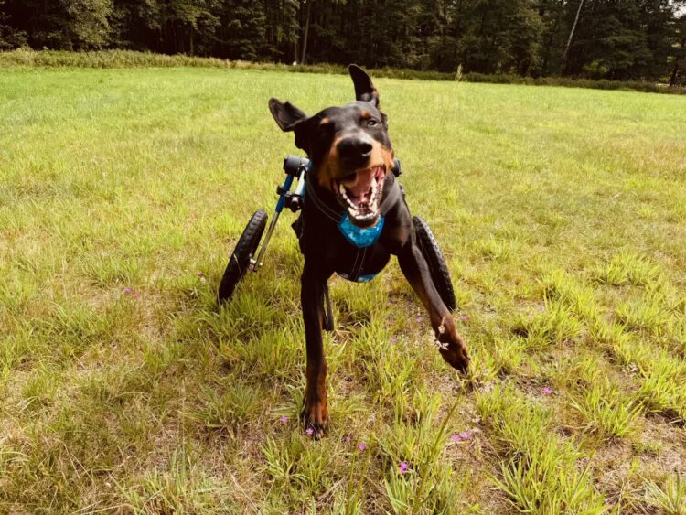 Michał Sikora wypatrzył go na grupie miłośników dobermanów i jak mówi, była to miłość od pierwszego wejrzenia. Dzisiaj Ares jeździ na wózku a jego opiekun nie może go dogonić