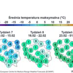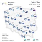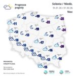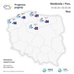 Temperatura maksymalna w tych rejonach wyniesie od minus 12 do minus 8 st. C w ciągu dnia, w nocy z piątku na sobotę miejscami od minus 17 st. C do minus 15 st. C, a podczas kolejnych nocy od minus 22 st. C do minus 18 st. C, lokalnie około minus 25 st. C.
