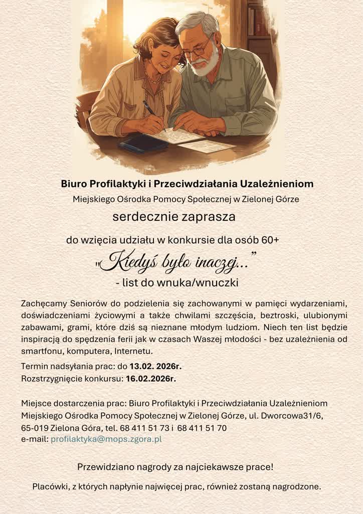 Napisz list do wnuczka i opowiedz o swoich niezapomnianych rozrywkach – Biuro Profilaktyki i Przeciwdziałania Uzależnieniom w Zielonej Górze przygotowało konkurs dla seniorów.