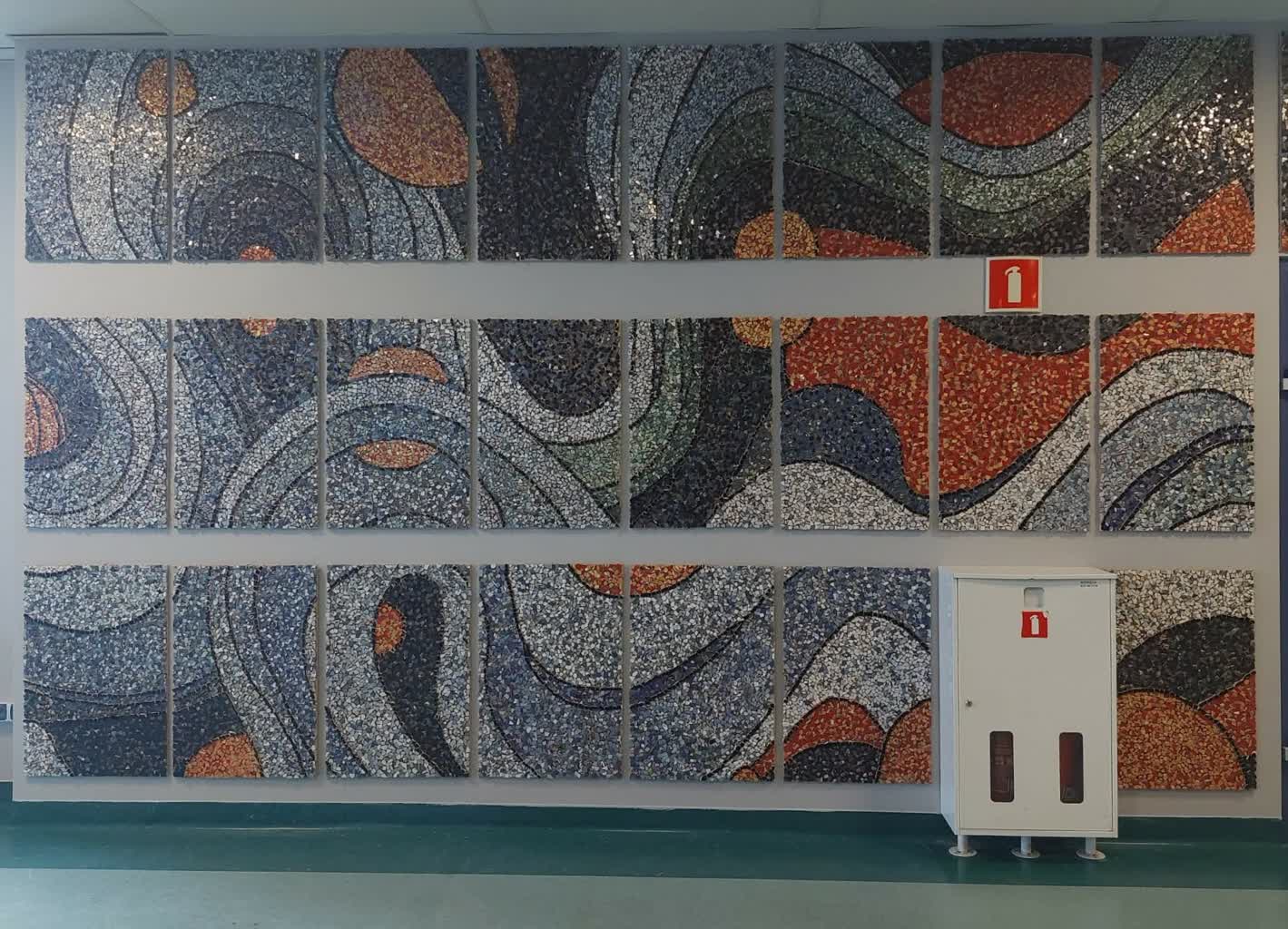 Mozaika stworzona przez studentów znajduje się w budynku A-29 przy ul. Podgórnej.