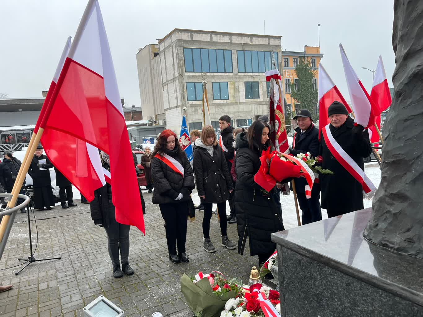Uroczystości przy pomniku Matki Sybiraczki zakończyły się złożeniem wiązanek kwiatów.