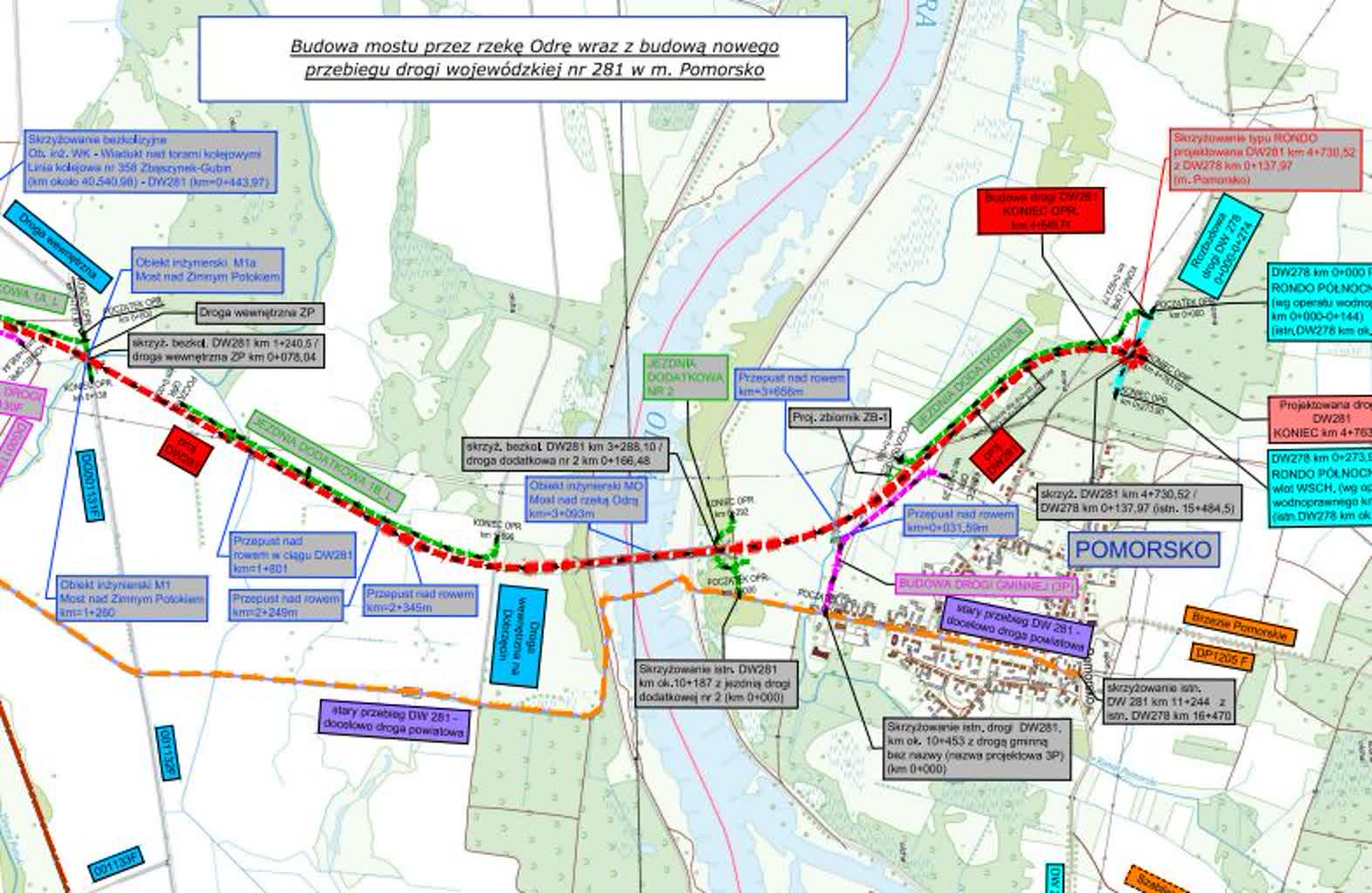 Fragment mapy orientacyjnej dla inwestycji związanej z budową mostu na Odrze w Pomorsku (lubuskie.pl)