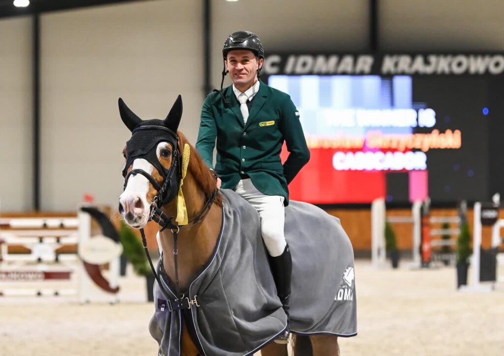 Jarosław Skrzyczyński z klubu Stajnia Sportowa Skrzyczyńscy Krzepielów wygrał jeździeckie zawody w skokach Grand Prix w Krajkowie.