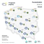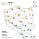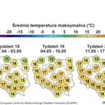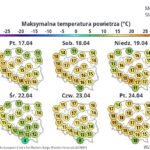 Temperatura minimalna na północy Polski od minus 2 st. C do 1 st. C, w centrum ok. 4 st. C, na południu do 8 st. C. Wiar słaby, zmienny z przewagą kierunku północno-zachodniego i zachodniego.