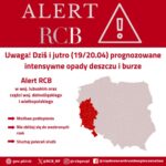 RCB poinformowało na platformie X o wysłaniu alertu przed intensywnymi opadami deszczu, burzami oraz możliwymi podtopieniami do mieszkańców województw wielkopolskiego, lubuskiego oraz dolnośląskiego. „Uwaga! Dziś i jutro 19 i 20 kwietnia prognozowane intensywne opady deszczu i burze. Możliwe podtopienia. Nie zbliżaj się do wezbranych rzek. Słuchaj poleceń służb” – przekazano.
