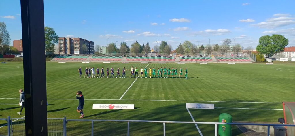 Tymczasem w 43 minucie przed polem karnym Majerczyk popełnił błąd, stracił piłkę, ta trafiła do Pruchniaka z Promienia, a gracz gospodarzy huknął pod poprzeczkę i do przerwy na tablicy był wynik 1-0.