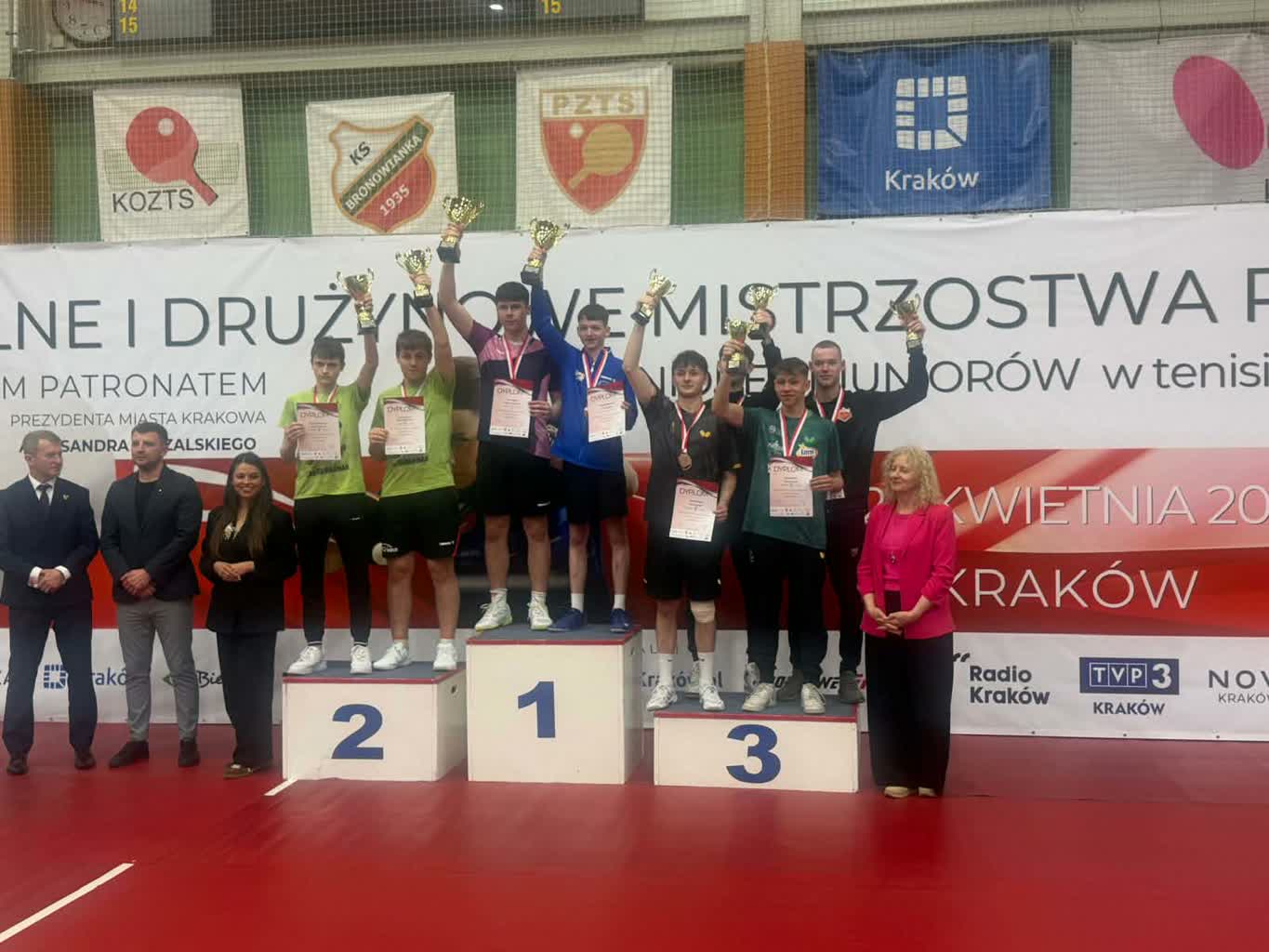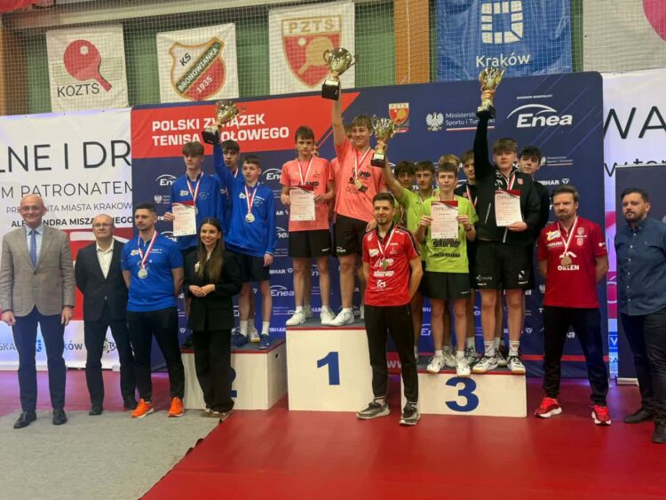 Tenisiści stołowi ZKS Palmiarni zdobyli cztery medale w młodzieżowych mistrzostwach Polski, które odbyły się w Krakowie. Pierwszy zespół ZKS-u obronił tytuł mistrza kraju, a brązowy medal zdobyła druga drużyna ZKS-u. Po srebro sięgnąl debel Samuel Michna i Patryk Żyworonek, a w singli brąz wywalczył Samuel Michna.