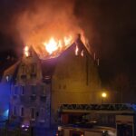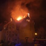 Pożar kamienicy przy ulicy Wąskiej w Zielonej Górze. Ogień zajął całe poddasze budynku. Trwa dogaszanie.