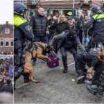 .@WiadomosciTVP | Manifestanci, którzy wyszli na ulice 🇳🇱#Amsterdam spotkali się z brutalnym zachowaniem policji. Byli pałowani przez funkcjonariuszy oraz gryzieni przez policyjne psy. Więcej w materiale @TulickiMarcin. pic.twitter.com/AqfwlK9tLY