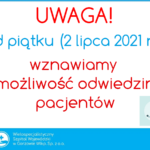 Osoba odwiedzająca musi mieć tzw. paszport covidowy lub ujemnego wyniku badania genetycznego wykonanego nie później niż 72 godziny przed odwiedzinami. Posiadanie tych dokumentów będzie weryfikowane przy wejściu do szpitala.
