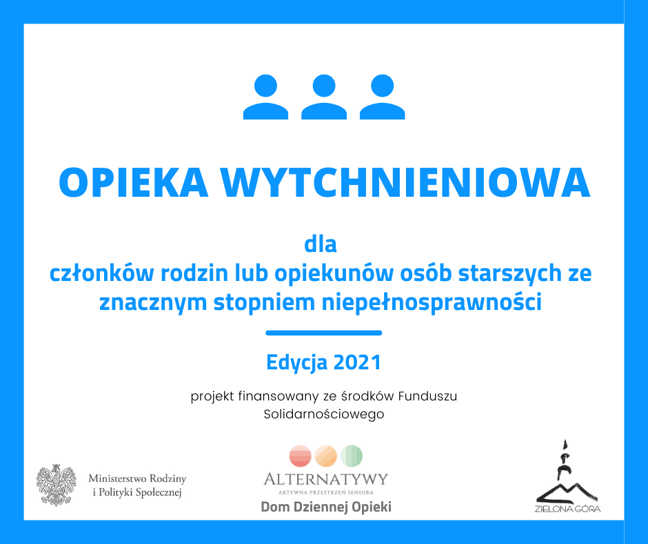 Dom Dziennej Opieki „Alternatywy” w Zielonej Górze realizuje zadania w tegorocznym programie „Opieka wytchnieniowa”. To oznacza, że członkowie rodzin oraz opiekunowie osób starszych z niepełnosprawnościami mogą skorzystać ze wsparcia i powierzyć seniorów pod opiekę wykwalifikowanej kadry.