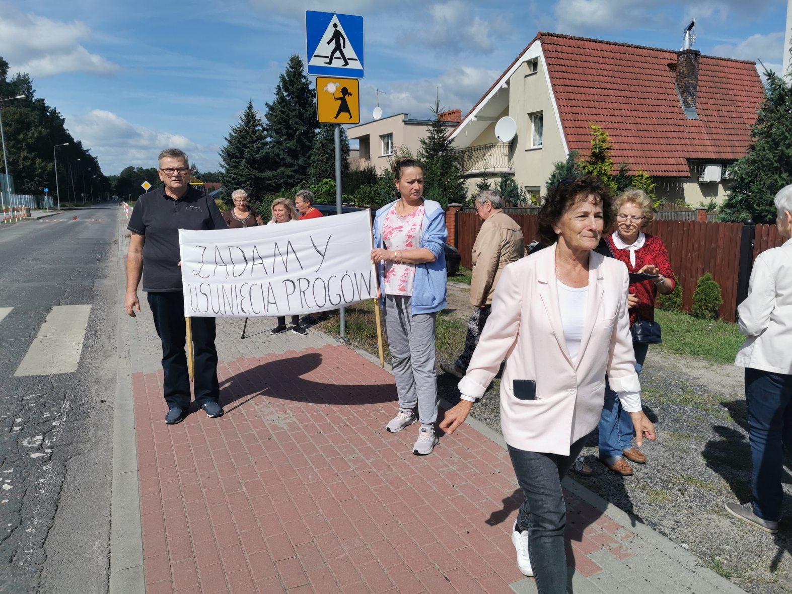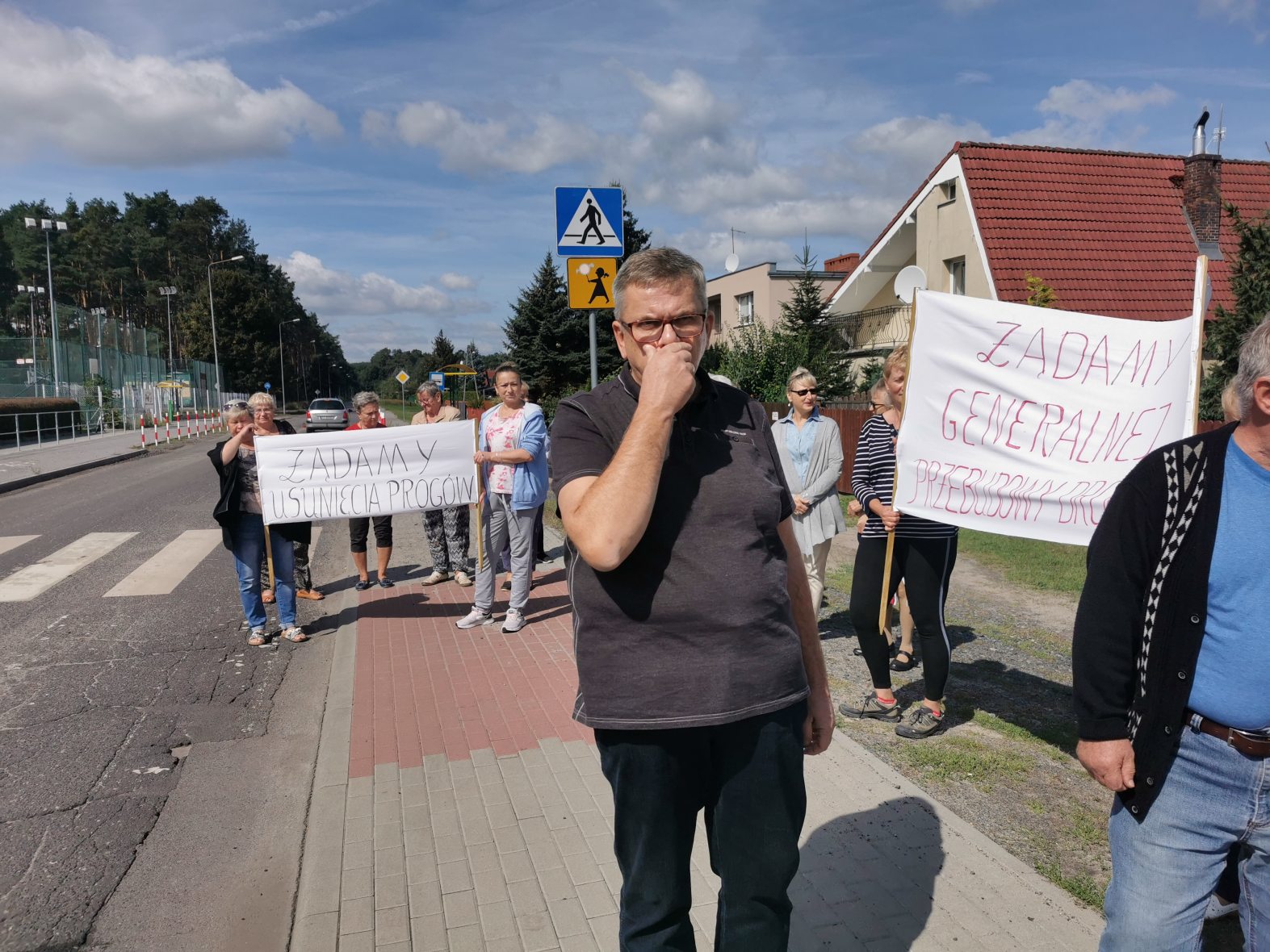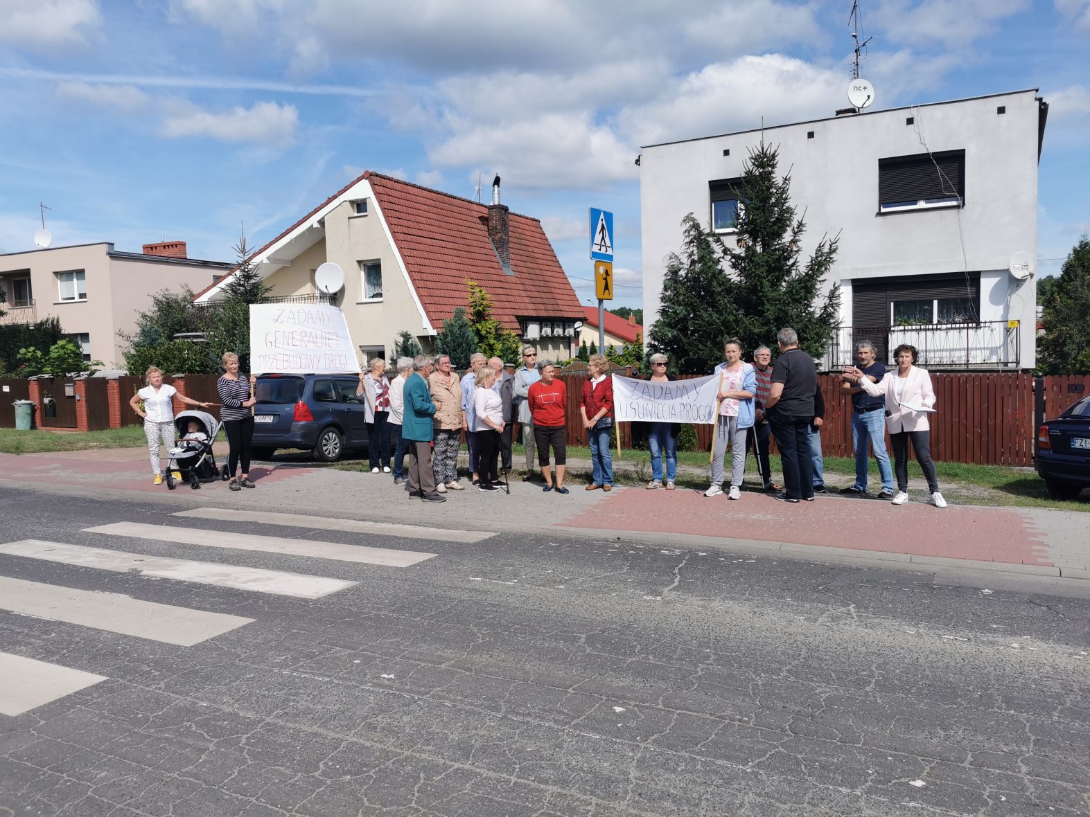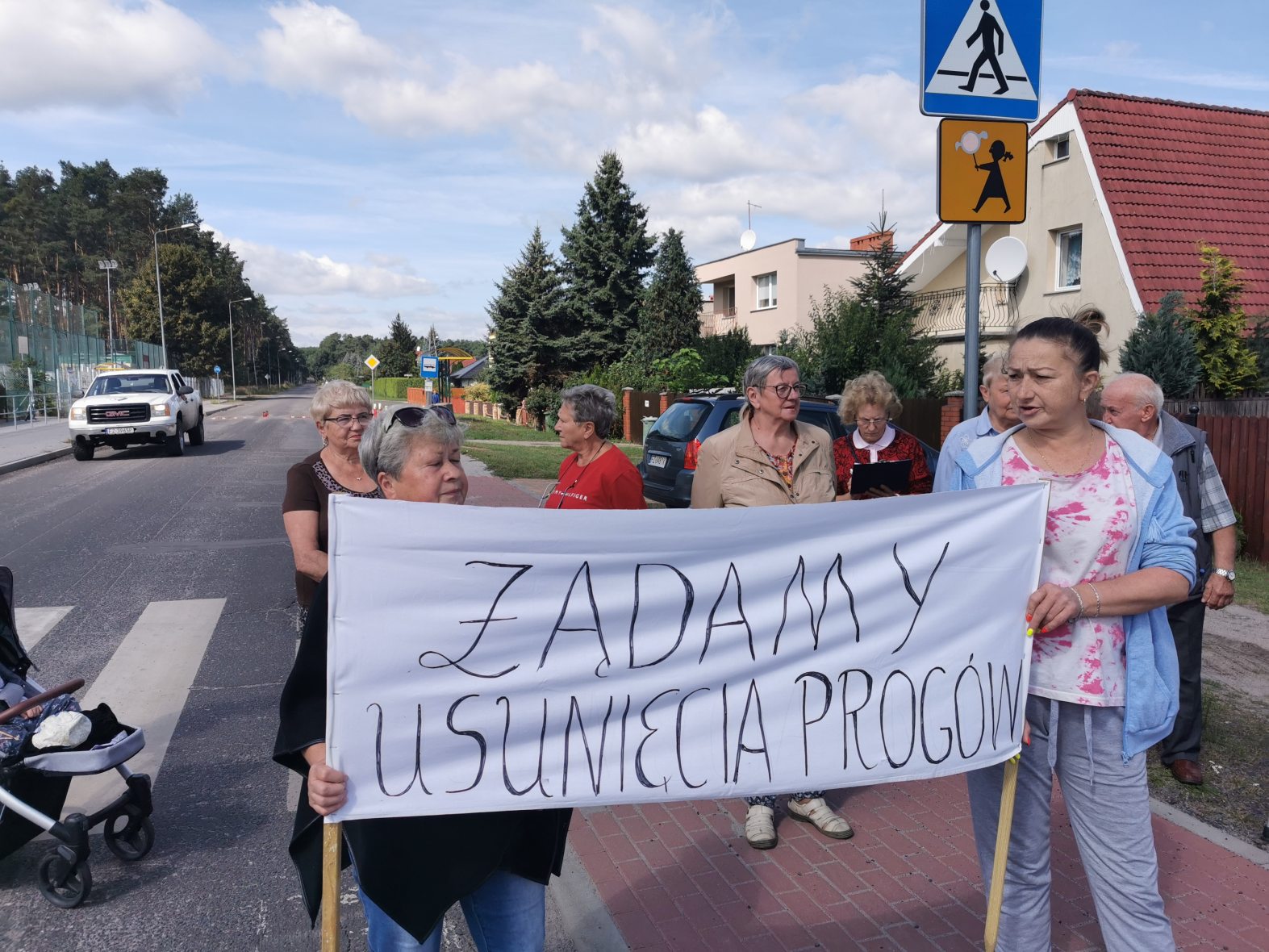 Chodzi o zły stan tej drogi oraz o wpływ progów zwalniających na pobliskie domy. Zdaniem mieszkańców wibracje spowodowane najeżdżaniem na progi powodują uszkodzenia ich domów. Od 12:30 kilkunastu zielonogórzan blokowało ul. Szkolną przechodząc z transparentami przez przejście dla pieszych.