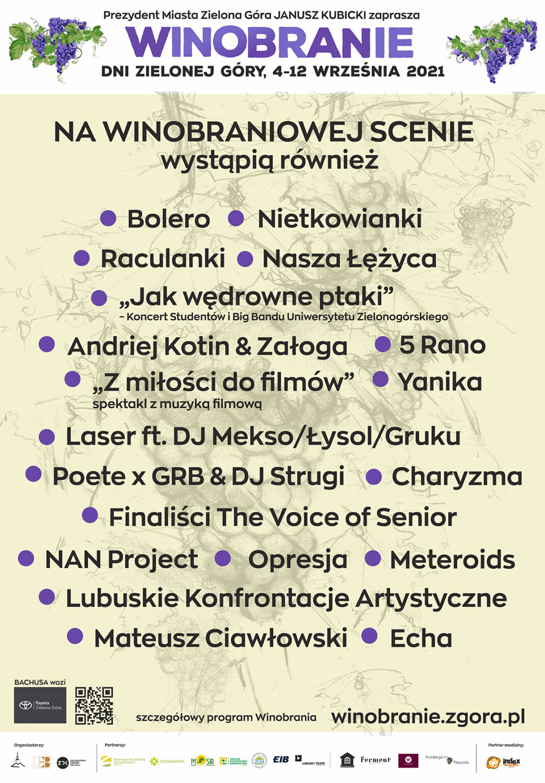 Pełny program imprezy znajduje się na stornie internetowej winobranie.zgora.pl