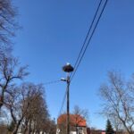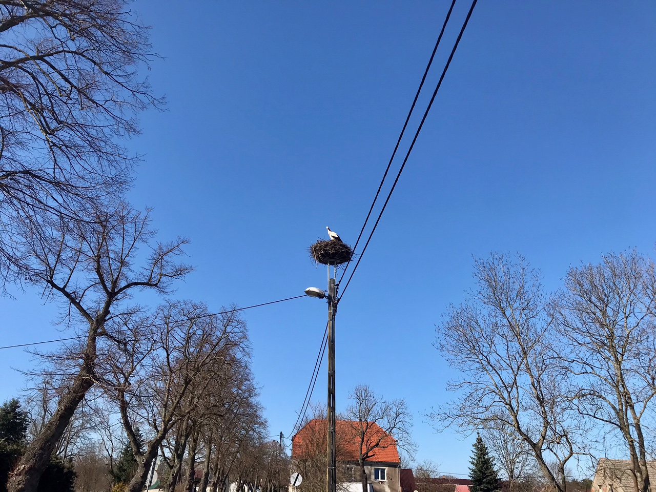 Wiosna w pełni – w Kiełpinie można spotkać bociana. Przełom marca i kwietnia to okres, kiedy te ptaki wracają do Polski z Afryki.