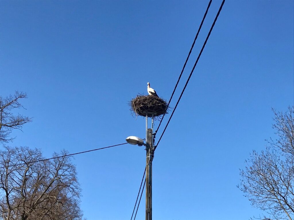 Wiosna w pełni – w Kiełpinie można spotkać bociana. Przełom marca i kwietnia to okres, kiedy te ptaki wracają do Polski z Afryki.