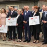 Zabrał też ze sobą symboliczne czeki z symbolicznymi kwotami, które symbolicznie przekazał komu trzeba.