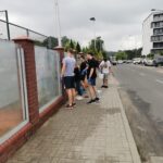 Pogromcy Bazgrołów wraz z uczniami V Liceum Ogólnokształcącego czyścili dziś szklany płot przy ul. Zachodniej.
