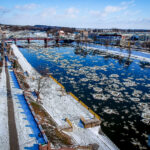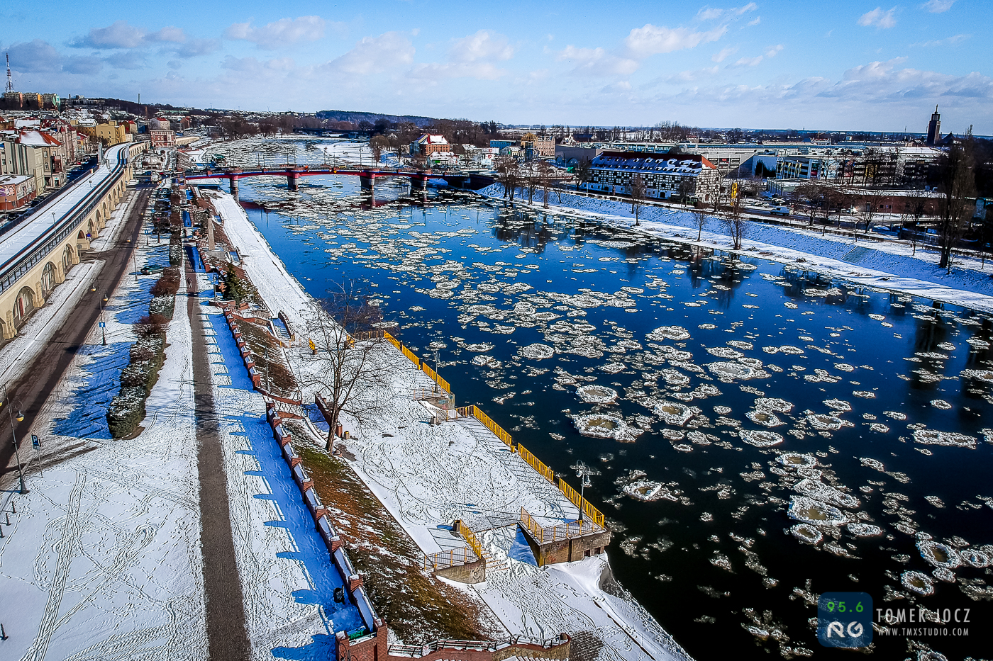 Kilka dni mrozu i opady śniegu sprawiły, że szare oblicze Gorzowa trochę się rozjaśniło. Po Warcie płynie śryż, a białe dachy i chodniki dodały uroku bulwarowi i jego okolicom. Zobaczcie jak z góry wygląda miasto w zimowej odsłonie.