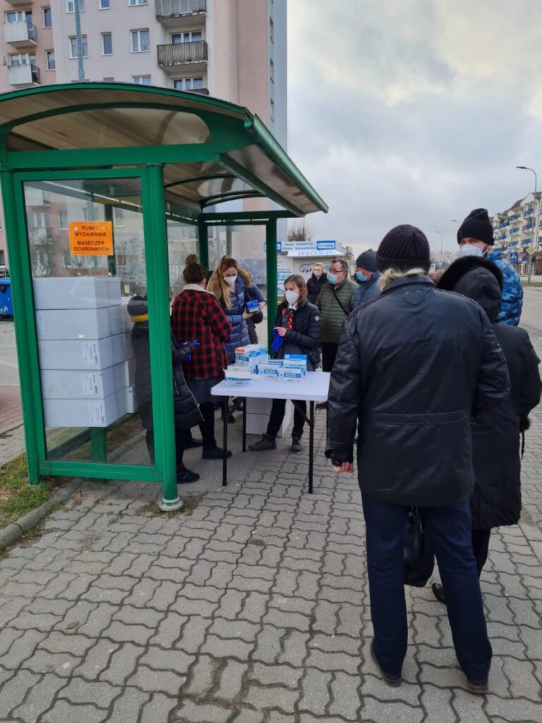 Wolontariusze wręczali maseczki na przystankach autobusowych przechodniom, pasażerom MZK, a nawet kierowcom. Nasi mieszkańcy bardzo pozytywnie oceniają inicjatywę.