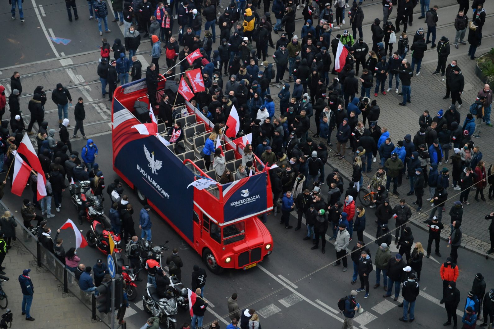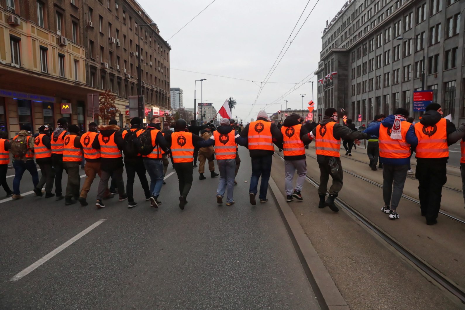 – poinformował rzecznik Stowarzyszenia Marsz Niepodległości Damian Kita. Planowo uczestnicy mieli zawrócić na rondzie Waszyngtona oraz wrócić do centrum miasta, gdzie wydarzenie miało zostać zakończone.