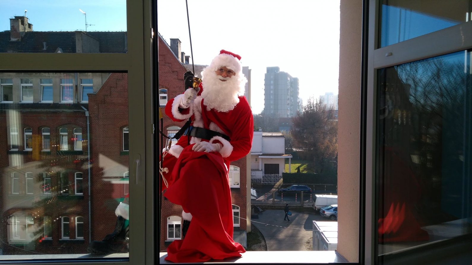 Jest to już tradycyjna akcja, jednak tym razem przybrała inną formę, bo Mikołaj prezenty przekazywał przez okno wisząc na linie kilkadziesiąt metrów nad ziemią: